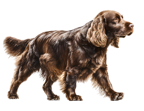 Walking Sussex Spaniel Dog with Compact Frame and Feathered Ears, Side PNG View