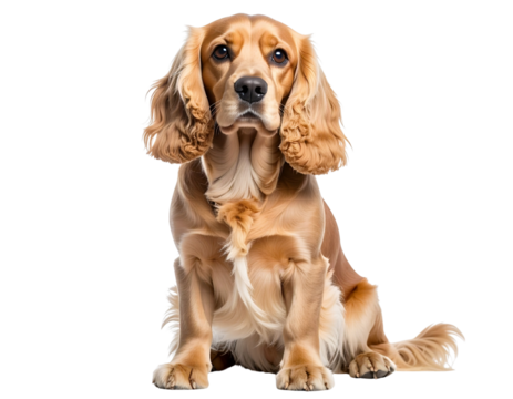 Sussex Spaniel Sitting Upright with Droopy Ears and Calm Expression, Front View, Transparent Background