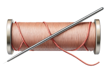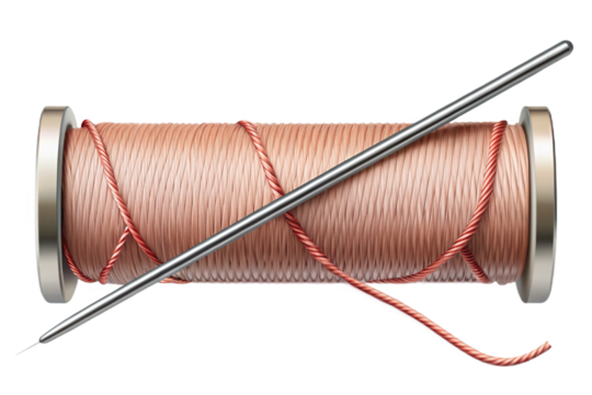 Realistic suture thread and needle on a clean black canvas for medical or craft applications transparent background