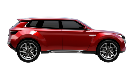 Red SUV car isolated on a transparent or a white background, cut out, PNG