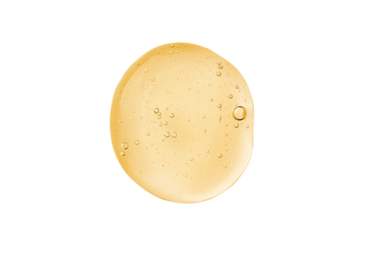 Face serum drop isolated on transparent background. Face oil, liquid gel swatch texture. Vitamin C serum texture.