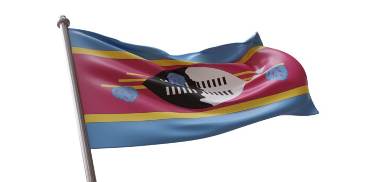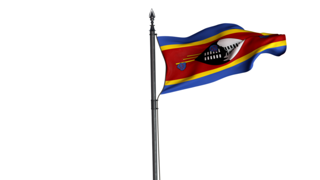 Swaziland flag waving isolated on white transparent background, PNG.