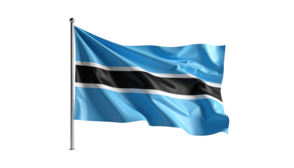 A digital rendering of the waving flag of the Republic of Eswatini, showcasing vibrant light blue, black, and white color bands on a black background.