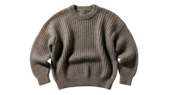 Brown knitted sweater with ribbed texture on isolated transparent background