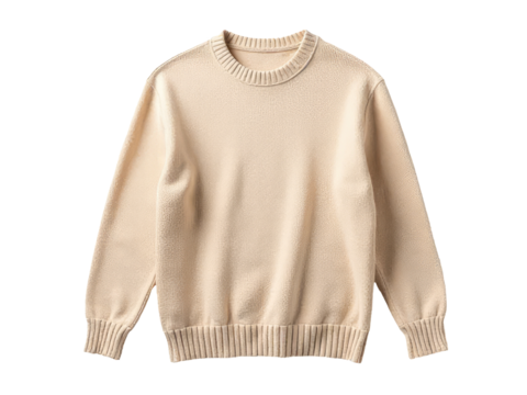 Warm beige woolen sweater folded neatly, isolated on transparent background, perfect for showcasing winter apparel