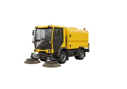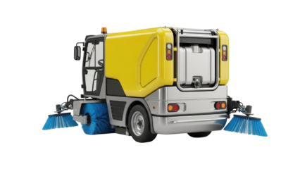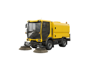 Isolated yellow street sweeper, heavy-duty cleaning vehicle for outdoor maintenance work
