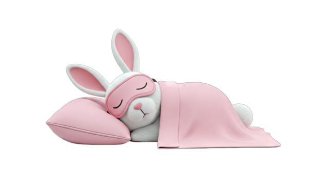 Sleeping Bunny with Eye Mask and Blanket on Pillow