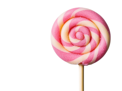 A vibrant pink and white swirl lollipop on a stick, perfect for evoking nostalgia and sweetness in any creative project.
