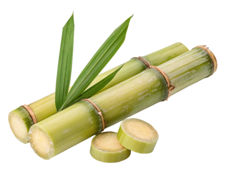 Green sugarcane stalks and leaves isolated on white background for natural sweetness concept