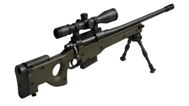 Cutout PNG of Accuracy International AWM Sniper Rifle – Hyper-Realistic Diagonal View