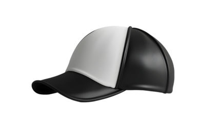 Blank black and white sport swim cap mockup, side view isolated on a transparent background