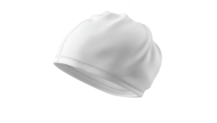 White swim cap, wrinkle-textured, rubbery material, used in water activity and swimming