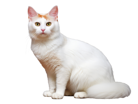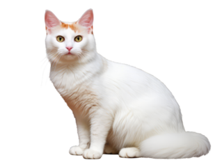 Cute white ragdoll cat sitting on top of a colorful inflatable swim ring isolated against a transparent background