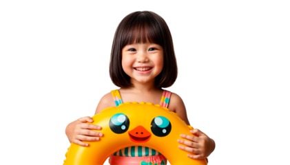 Close-up of smiling woman wearing swimming goggles on transparent background