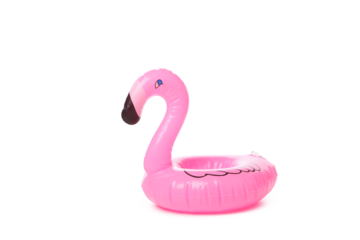 Vector illustration: woman relaxing in pink flamingo tube on transparent background