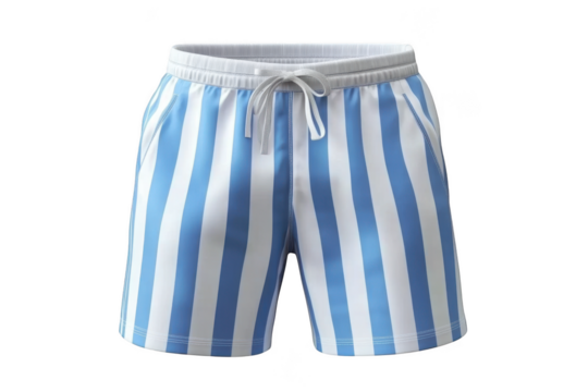 Stylish and sporty swim trunks isolated on transparent background, perfect for a day at the beach or pool with a unique design