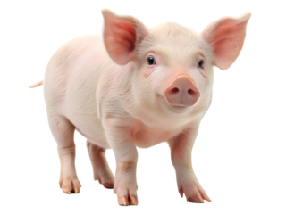 A domestic piglet with pink skin and floppy ears, isolated on a transparent background
