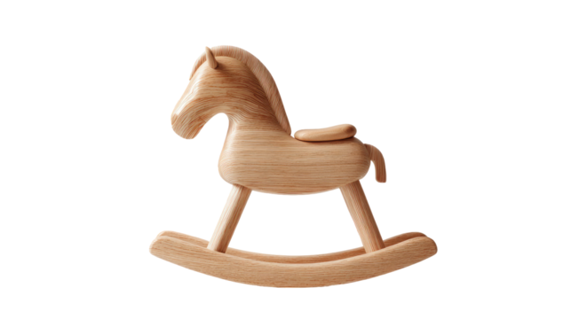 A chicken sitting on a wooden swing suspended by ropes, isolated against a white background.