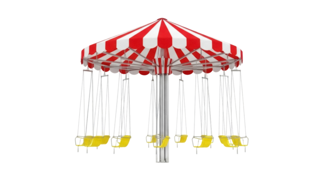 Isolated carnival swing ride with red and white striped canopy for amusement parks