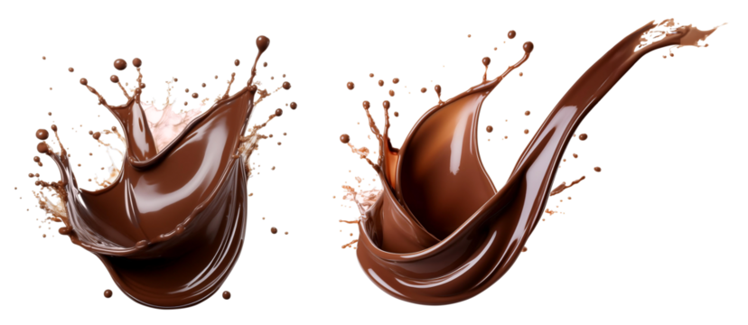 Set of chocolate splashes, cut out. Flowing and dripping chocolate with clipping path.
