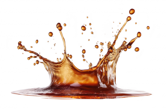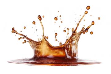 A dynamic splash of brown liquid capturing the moment of impact against a white background. the fluids movement and energy. perfect for beverage-related themes