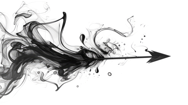 A dramatic PNG smoke arrow emerging from a swirling vortex, with transparent background; dynamic spiral smoke effect perfect for graphic design, overlays, logos & illustrations.