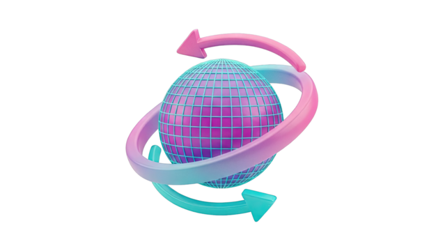 3D Globe with Swirling Arrows and Gradient Colors