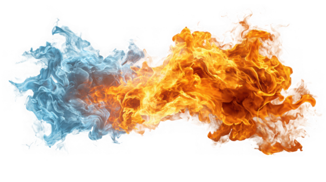 Bright intense fireball explosion with swirling flames and thick smoke, isolated PNG for action artwork, compositing, and realistic visual effects
