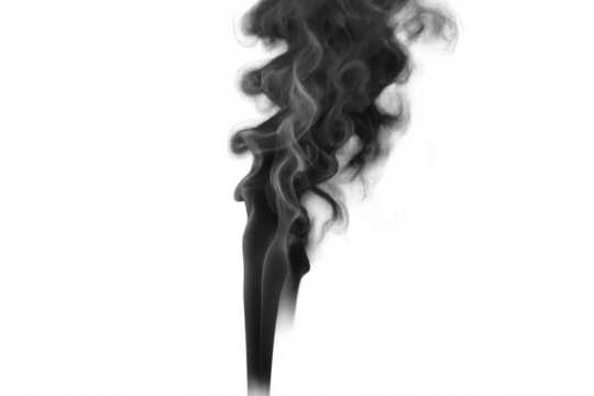 Dark smoke cloud swirling in the air on a transparent background, adding dynamic visual effects for creative designs or artistic projects