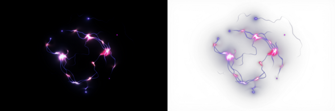 Abstract glowing energy particles in vibrant colors, swirling and connecting in a dynamic composition, creating a sense of movement and ethereal beauty with copy space