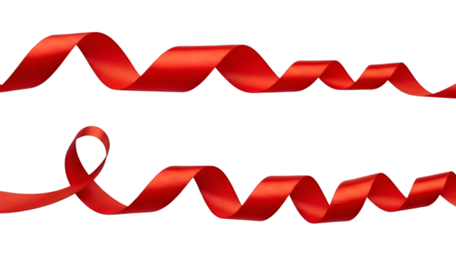 Two red ribbons with wavy lines on isolated transparent background for decoration and design