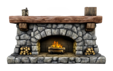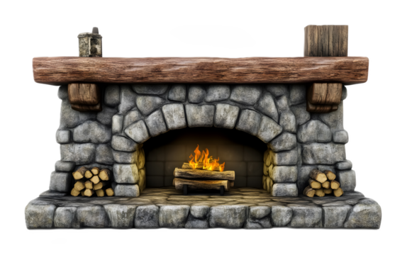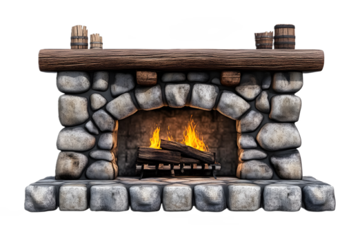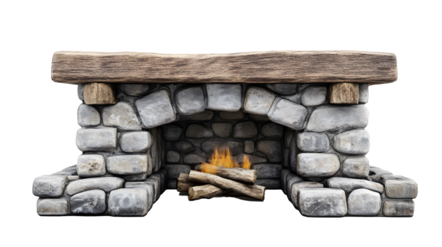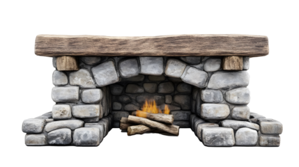 Rustic fireplace heritage on a transparent background. isolated background.