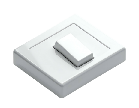 Close-up of a white light switch on a transparent background, representing the concept of power control and energy saving