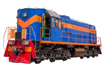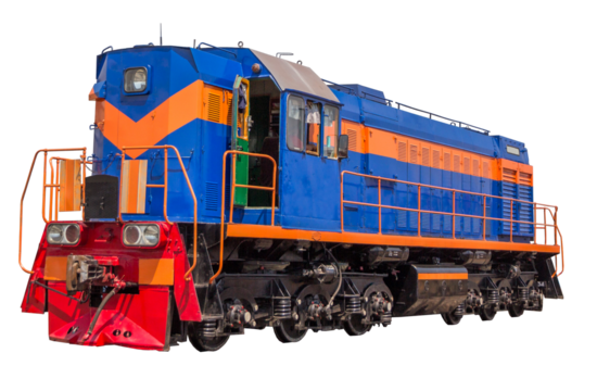 Heavy industrial diesel shunter locomotive for a mining railroad on a transparent background