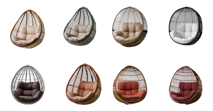 Comfortable lounge chairs in multiple colors and styles isolated on transparent background