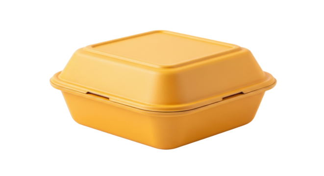 Isolated square food container or lunch box, disposable, made of plastic, clean look
