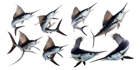 Swordfish Set Isolated on White Background, Fast Marine Predator Concept