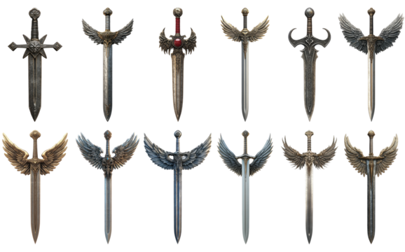 Medieval longsword with a steel blade and decorative hilt, isolated on white.  PNG transparent.