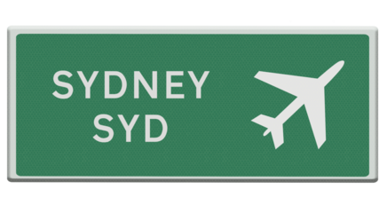 Digital composition. .Road sign for Sydney SYD airport. .PNg file .