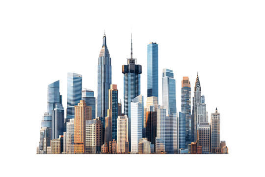 Modern city skyline isolated on transparent background