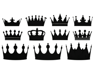 Collection of dark, stylized crowns in various intricate designs