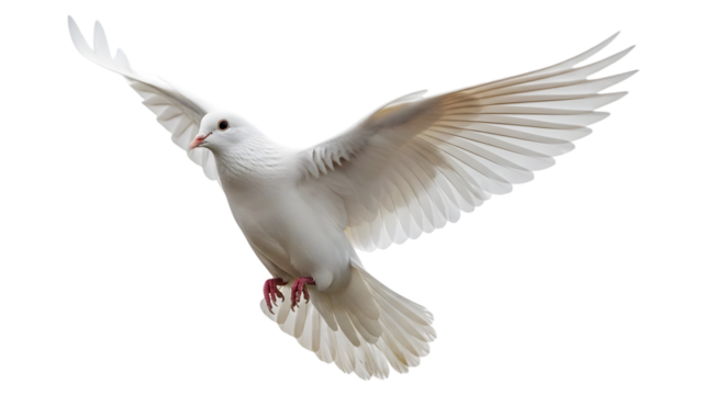 White dove flying isolated on a transparent background