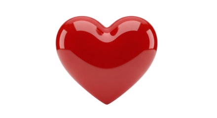 Glossy red heart on transparent background for love symbol