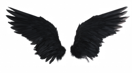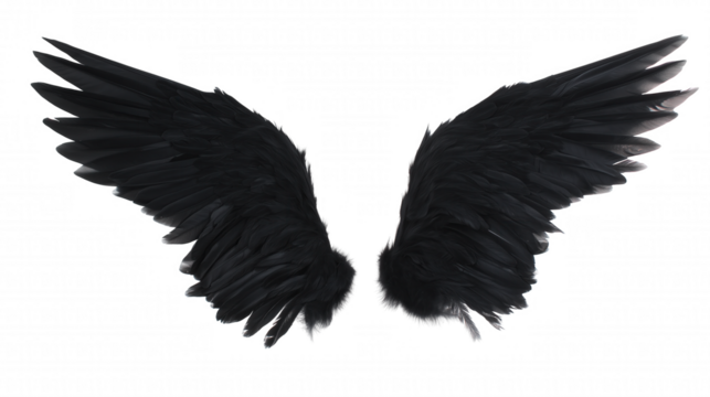Large, white angel wings, symmetrical and spread, on a transparent background, showcasing detailed feathers