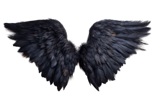 Vector art with spreading grey layered feathered wings, transparent backdrop