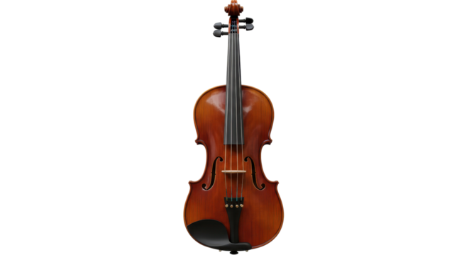 Classic Wooden Violin Instrument Isolated on White or Transparent PNG, Elegant Musical String Equipment