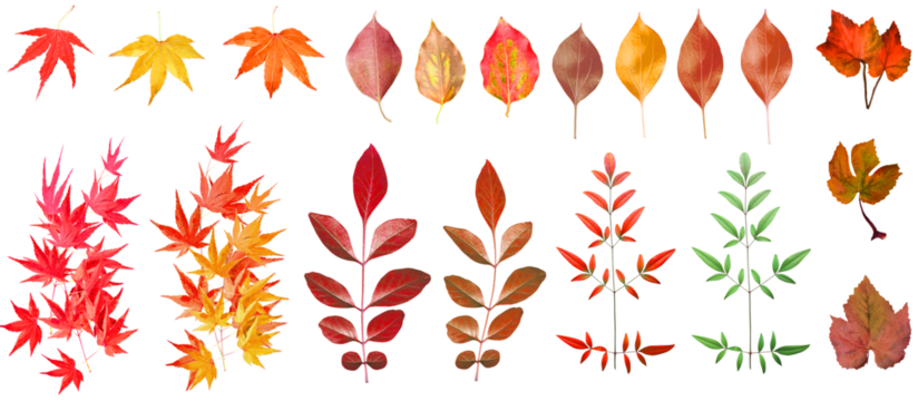 【PNG透過素材】紅葉と落ち葉いろいろ19種類