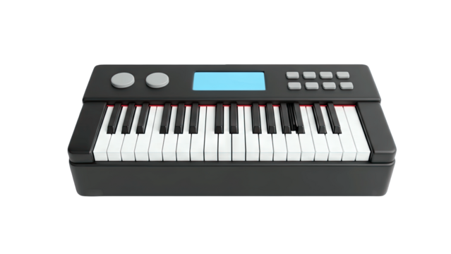 Futuristic synth keyboard instrument music production audio equipment synthesizer sound design isolated on transparent background