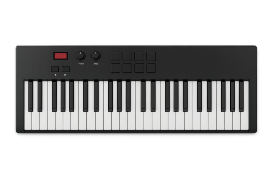 Sleek Modern Piano Keyboard with Control Buttons on white background