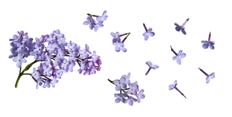 Botanical collection. Blooming lilac isolated on white background. Element for creating levitation, designs, cards, patterns, flower arrangements, frames, wedding cards and invitations.